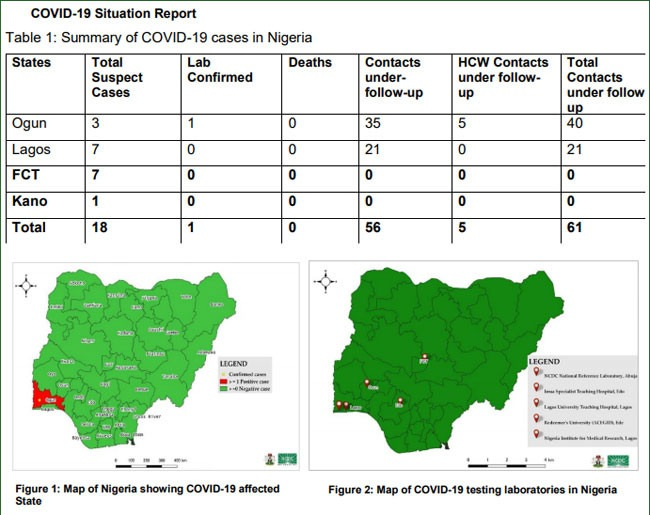 In its fifth national situation report on the virus, the NCDC revealed that there is no new confirmed case of coronavirus in Nigeria. The 18 people identified by the NCDC in Lagos, Ogun, Kano and the Federal Capital Territory (FCT) as suspected cases, are the latest figure as of March 4, 2020.