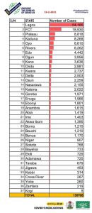 Other states with fresh cases include Ogun-45, Kano-44, Akwa Ibom-35, Edo-34, Rivers-27, Kaduna-23, Osun-23, Kwara-22, Taraba-22, Oyo-20, Ondo-19, Plateau-14, Abia-11, Imo-11, Nasarawa-7, Niger-6, Bayelsa-5, Delta-5, Enugu-3, Ekiti-2 and Jigawa-1.