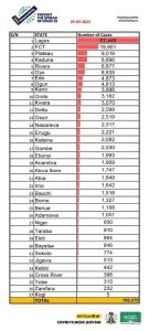 A breakdown of the new cases is as follows; Lagos-50, Kaduna-12, FCT-10, Bayelsa-8, Imo-3, Kwara-3, Bauchi-2, Osun-2, Akwa Ibom-1, Edo-1, Kano-1, Ogun-1, Oyo-1, Plateau-1, Zamfara-1.