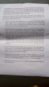 It concurred that no any of the individuals from the Unions would be misled due to the strike activity while taking note that JOHESU would need to recommence the hit with a seven-day notice should the public authority neglect to keep its piece of the deal.