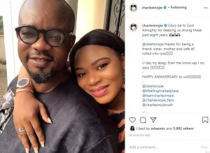 Nollywood actor, Charles Inojie took to Instagram to celebrate his 8th wedding anniversary with his wife Obehi Inojie.