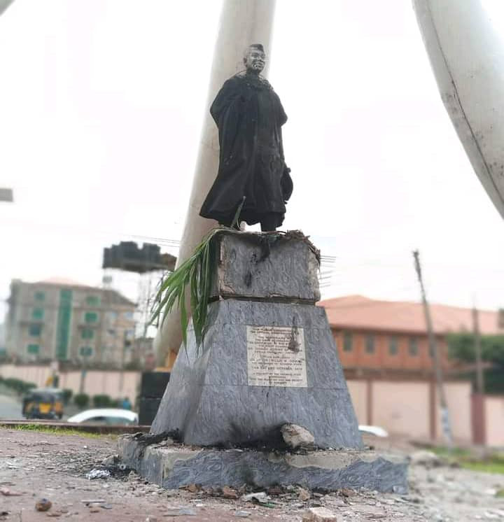 The statue was at Denis Memorial Grammar School Roundabout, Awka Avenue, Onitsha, known as Zik Roundabout. While the mob was on a rampage, they doused the statue with petrol before setting it on fire.