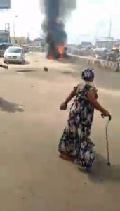 A truck fully loaded with salt was on Tuesday set ablaze by an angry mob in Onitsha after it killed a cart pusher.