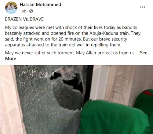 My colleagues were met with shock of their lives today as bandits brazenly attacked and opened fire on the Abuja-Kaduna train. They said the fight went on for 20 minutes. But our brave security apparatus attached to the train did well in repelling them.