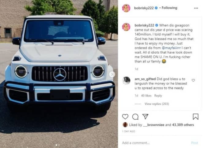 Nigerian cross-dresser, Bobrisky has acquired a brand new Mercedes Benz Brabus G63 worth about ₦140 million.