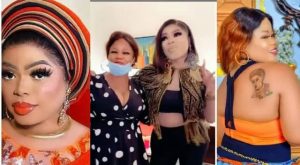 Nigerian crossdresser, Idris Okuneye popularly known as Bobrisky has finally met the lady who tattooed his face on her body.