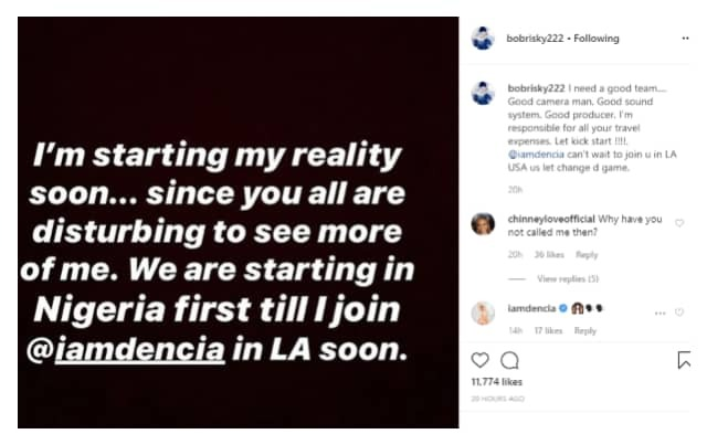 Popular Nigerian crossdresser, Bobrisky, has announced that he will be diving into the lucrative world of reality TV soon.