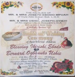 “Dear Blessing 27th is close and our cloths have arrived from Aba I’m waiting for you to return from Calabar so we can conclude the plans. You know this marriage will be top notch .