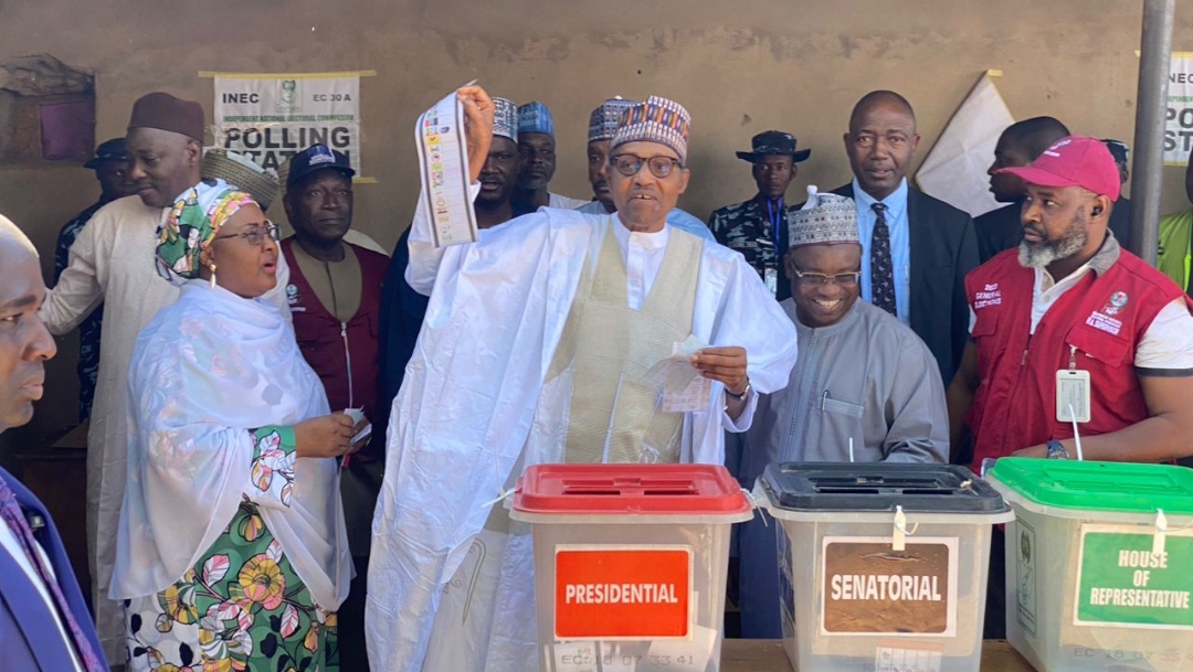 It was not clear whether the president’s decision to show off his ballot papers to voters around his polling unit contravenes the provisions of the Electoral Act of 2022.