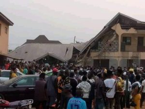 - The building, which was rented by the church for worship purposes, collapsed during service on Tuesday.