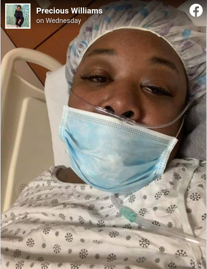 A lady identified as Precious Williams has shared a heart-wrenching experience about how she is struggling to cope after testing positive for coronavirus. Precious disclosed in a message on social media that she tested positive for the COVID-19 and she asked her friends to remember her in their prayers for a speedy recovery.