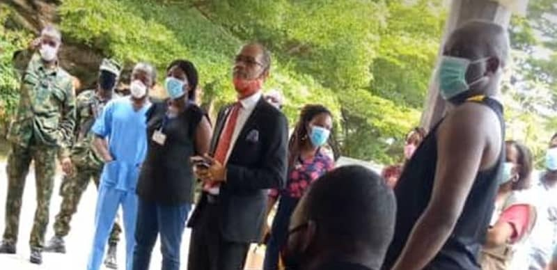 According to the evacuees that spoke with The PUNCH, the commissioner, who was clad in a suit and red tie, arrived at the isolation centre in a black Sports Utility Vehicle around past 12pm.