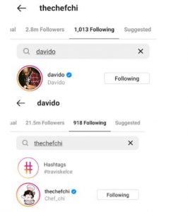 Award-winning singer, Davido and his third babymama, Chioma Rowland are now following each other on Instagram.