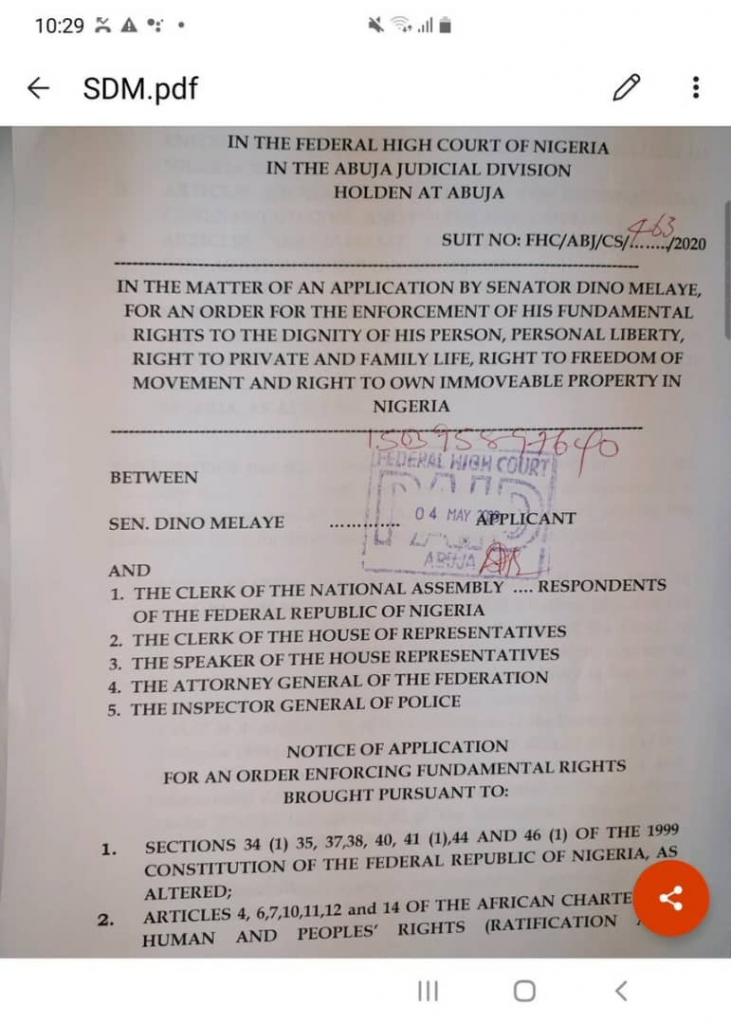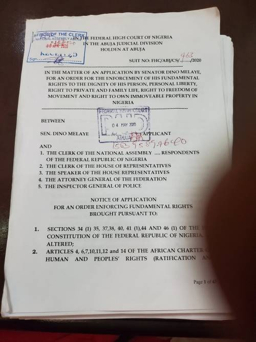 Melaye on Monday said he filed the suit FHC/ABJ/CS/463/2020, before the Federal High Court in Abuja.