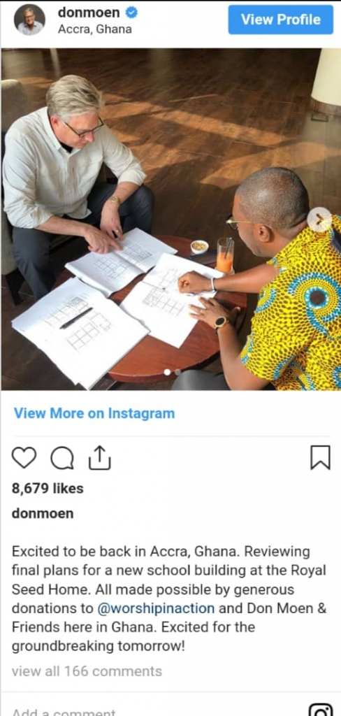 In his interview with the media, Don Moen said that the charitable gesture was his way of giving back to Ghana after he had been invited to perform for 13 years.