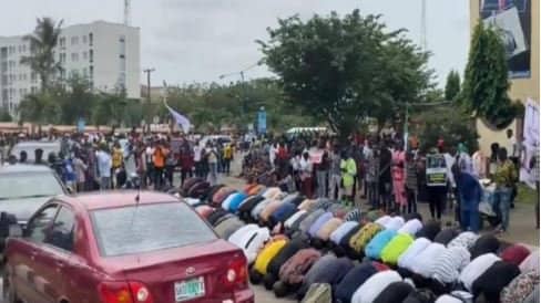 Popular comedian, Macaroni took to his Twitter page to share the video of the Muslims praying on the road.