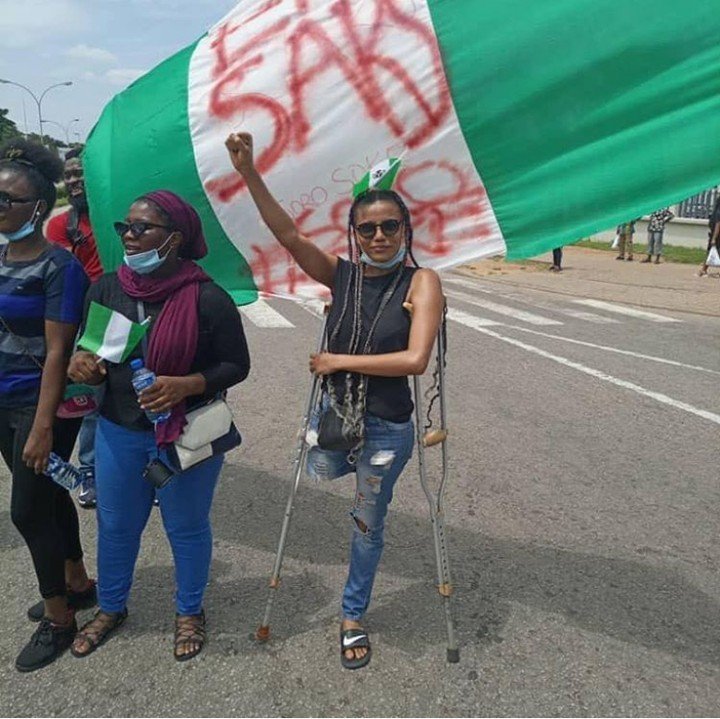 Despite living with just a limb, this did not deter her from joining the ongoing anti-SARS protest. A photo of Jane at the protest walk surfaced online, leaving many people in awe and some, inspired.