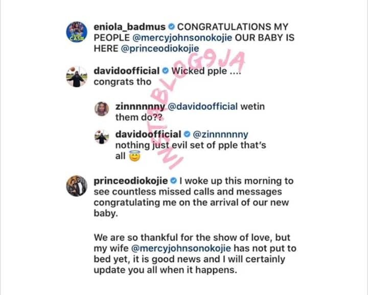 Badmus had joined the rest of her colleagues to congratulate Mercy Johnson on the supposed arrival of her 4th baby and Davido commented.