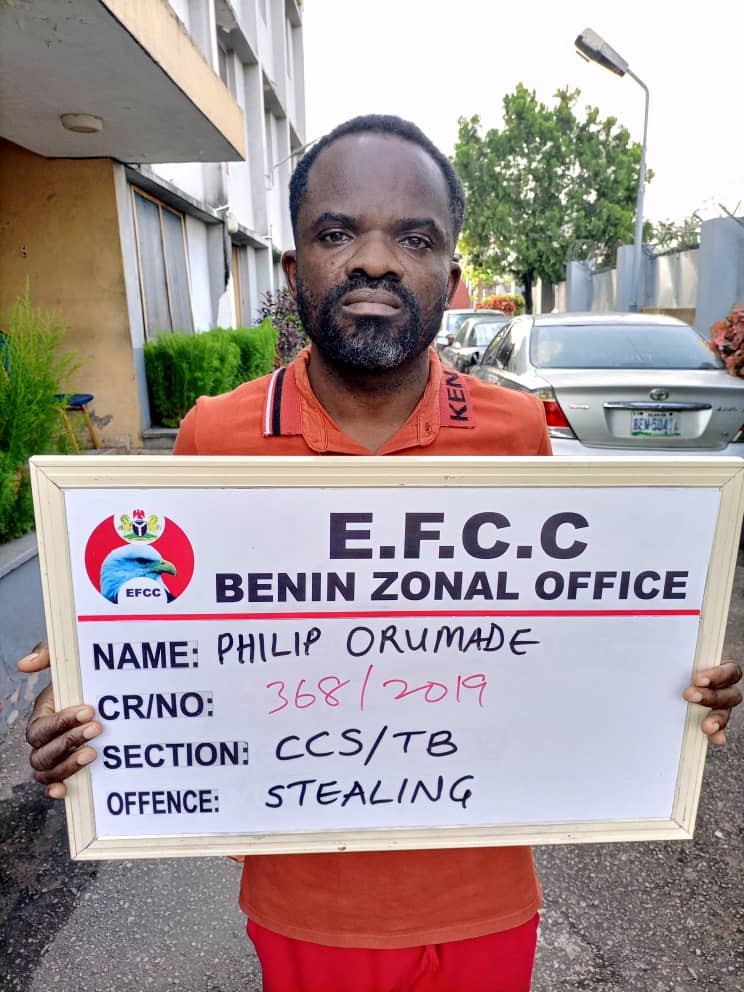 The Economic and Financial Crimes Commission, EFCC, Benin Zonal Office has arraigned Philip Orumade on a nine-count charge bordering on stealing before Justice Efe I. Ikponmwonba of the Edo State High Court, Benin City.