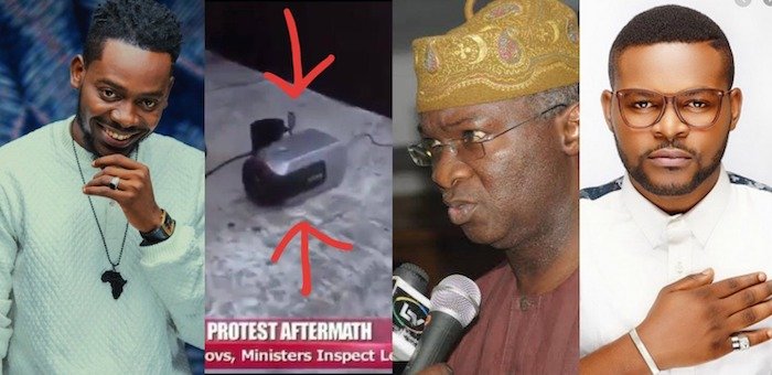 Afrobeat singer, Adekunle Gold and Rapper, Falz have both reacted to the hidden camera found by Fashola.