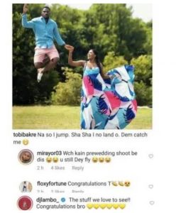 According to Tobi, “dem catch me”, he said … referring to his longtime girlfriend Anu Oladosu who is seen in the photo holding hands with him while he stayed in the air.