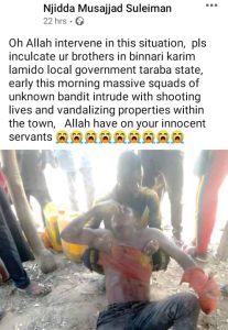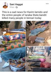 At least 15 people, including three housewives, were killed by bandits at Binnari and Jab Jab villages in Karim Lamido Local Government Area of Taraba State on Wednesday, November 10.