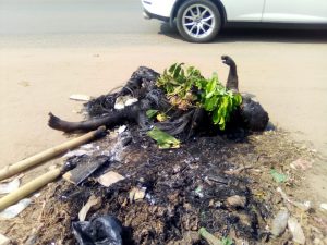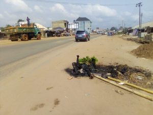 According to reports, the suspected thief attempted to snatch the phone of a female passerby. When she refused, he stabbed her in the process. Eyewitnesses caught up with him, beat him up, and then set him on fire. His charred body is still lying on the road.