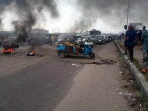 Some aggrieved protesters have taken to the streets in Warri, Delta State, after policemen attached to the Ebrumede Division killed a woman and her little child while they were trying to arrest some suspected Internet fraudsters.