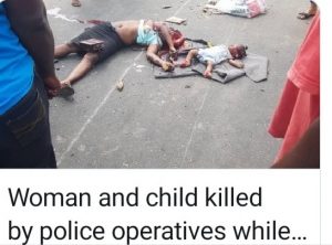 Eyewitnesses told confirmed that the police vehicle hit a tricycle the mother and child were in, killing them on the spot.