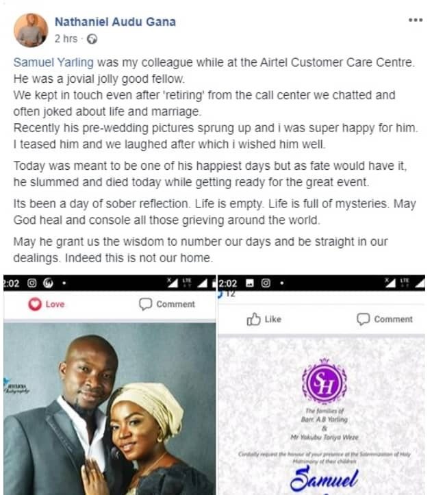 The deceased’s friend took to facebook to eulogize the late groom and it was really a sad one.