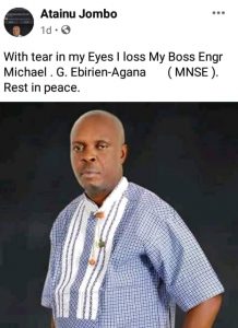Meanwhile, friends and community members have taken to Facebook to mourn his death. One Gogonte  Obediah described the late engineer as a patriot and lover of people.