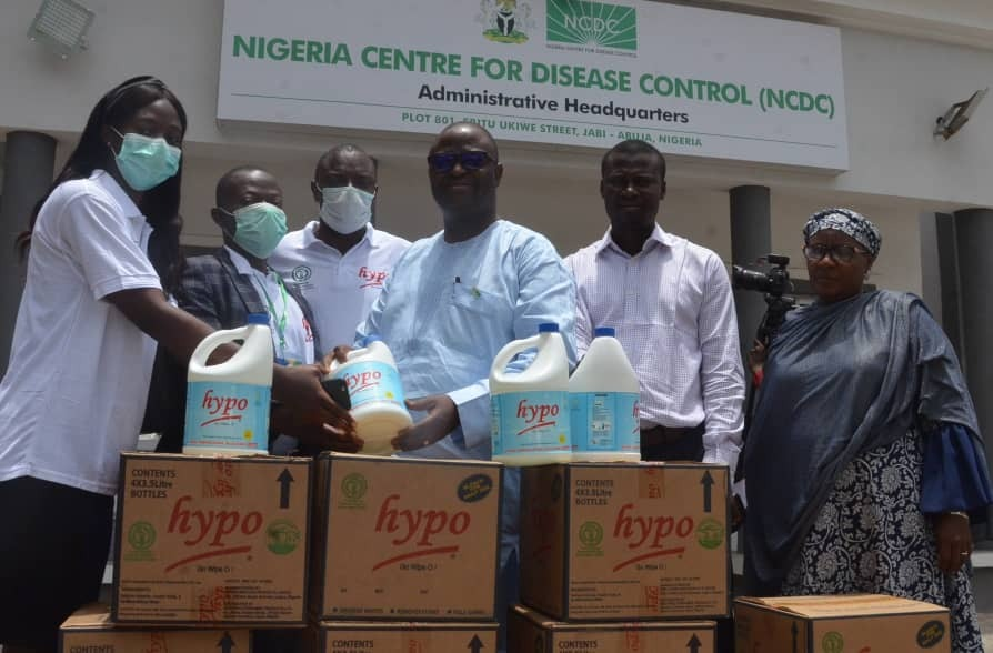 Donation exercise took place at the Headquarters of NCDC in Abuja, when officials took delivery of the 200 cartons of 3.5 liters size of Hypo bleach.