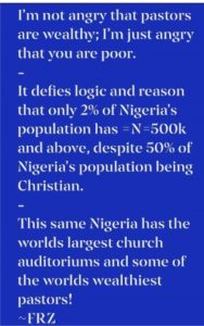 The OAP said he is just angry that while the pastors are wealthy, many Nigerians, some of whom are their congregants, are poor.