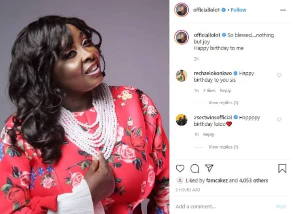 The beautiful lady who is 43 today, 27th of April, took to Instagram to share a picture of herself and acknowledge her birthday. She captioned the post ”So blessed….nothing but joy