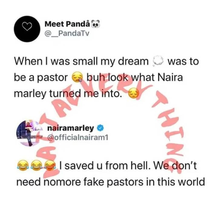 It all started after the Twitter user, identified as ‘Meet Panda’, took to Twitter street to point out that he had wanted to be a pastor but has now been heavily influenced by Naira Marley.