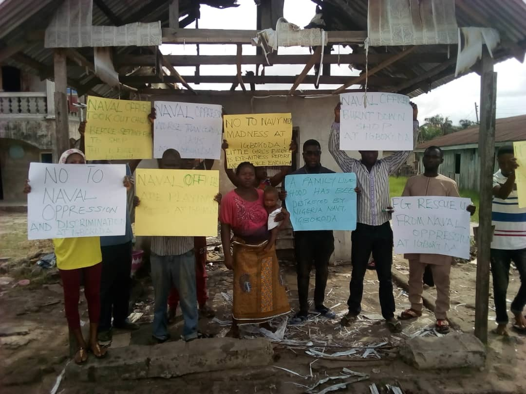 Carrying placards of different inscriptions, like, “NO TO NAVAL OFFICERS OPPRESSION,” “A FAMILY LIVELIHOOD HAS BEEN DESTROYED BY NAVAL OFFICERS AT IGBOKODA,” “NO TO NAVAL MADNESS AT IGBOKODA…” amongst others, they were in different groups of less than ten each – in observing the social distancing on covid-19 orders. They appealed to Governor Akeredolu to wade in urgently.