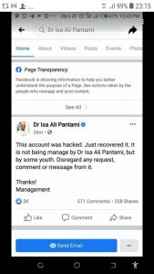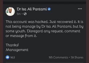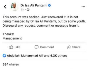 “This account was hacked, just recovered it, it is not being managed by Pantami, but by some youth. Disregard any request, comment, or message from it,” the minister claimed.