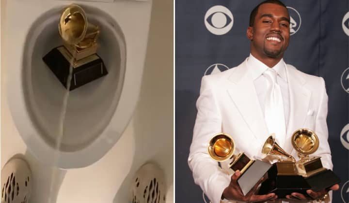 American music and fashion icon Kanye West urinate on a Grammy award as he declared: “all musicians will be free”.