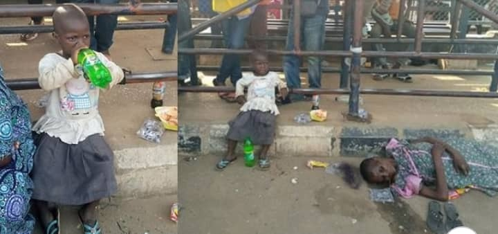 An eyewitness, Ugochi Euphemia, shared photos on facebook and it shows the deceased’s daughter beside her body, unaware her mother is dead.