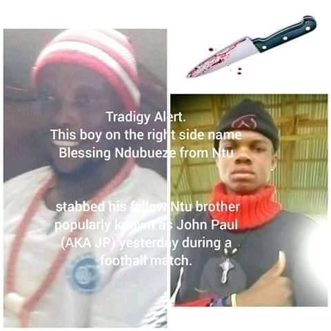 A 15- year- old boy identified as Blessing Ndubueze allegedly stabbed a footballer, Johnpaul Etugha, 37, to death during a football match in Imo State.