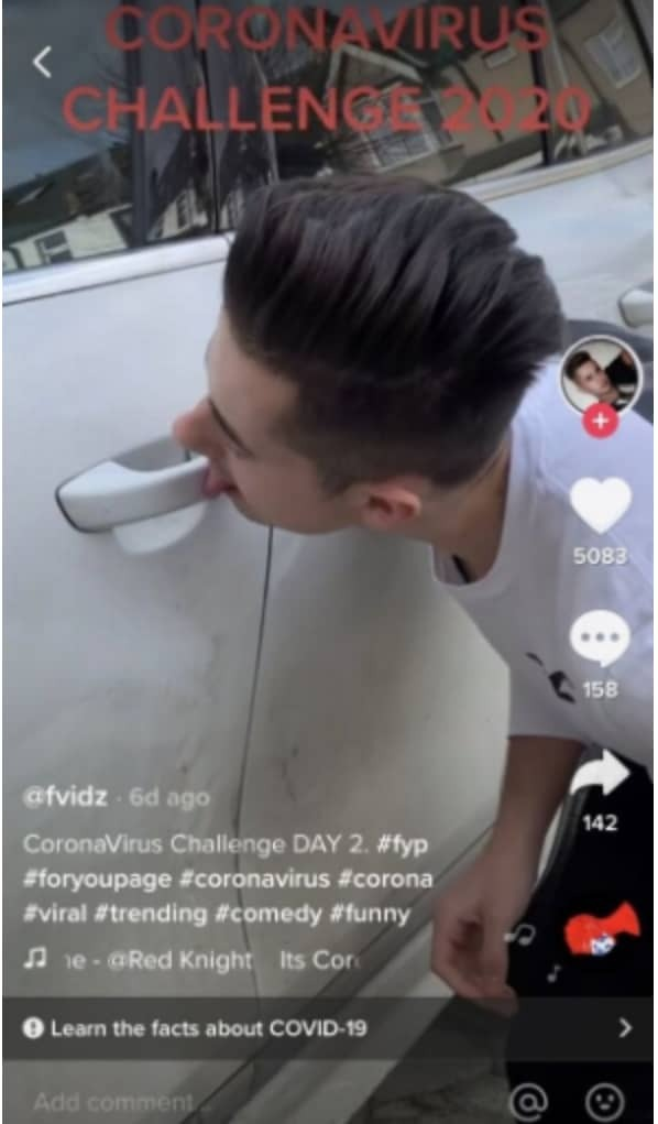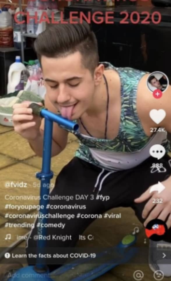 The “coronavirus challenge” started after a TikTok influencer shared a clip of herself licking a toilet seat as someone says “it’s corona time“.