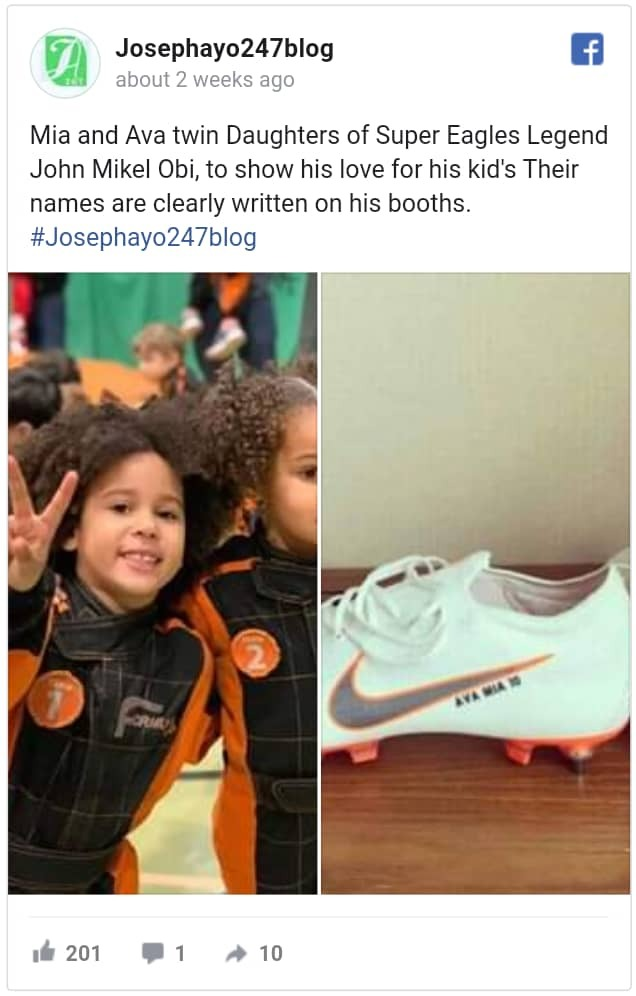 John Obi Mikel has never for once denied his love for his family after he recently inscribed the names of his twin daughters on his football boots.