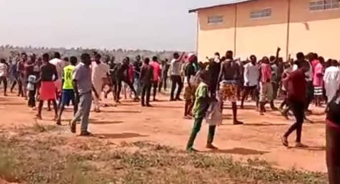 A series of videos posted by witnesses first showed the youths advancing towards the warehouse and security operatives forming a cordon over the warehouse and asking them to stay off.