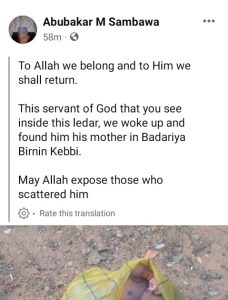 According to a Facebook user, Abubakar Sambawa, the baby was found dumped along a road in Badariya area of Birnn Kebbi on Sunday morning, May 22.