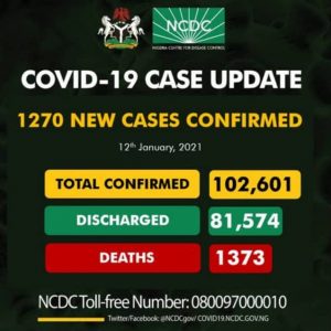 On Tuesday, January 12, Nigeria recorded 1270 fresh cases of coronavirus.