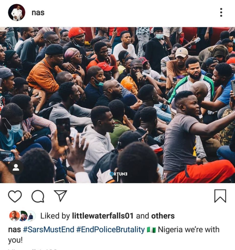 Nas has joined a growing list of international celebrities speaking out in support of the protests against police brutality in Nigeria.