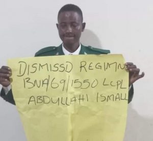 The Nigerian Army has dismissed a soldier, Abdullahi Ismail after he was found guilty of having sex with his colleague’s wife, SaharaReporters has gathered.