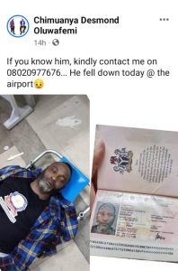 A Nigerian man identified as Obiefuna Tochukwu Kenneth has reportedly died after he slumped at an airport.