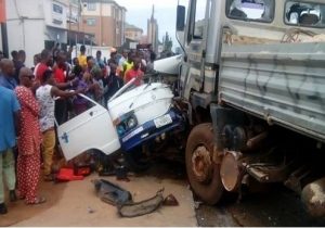 A fatal accident between an intra-city commercial bus and a heavy-duty truck has claimed nine lives on Tuesday morning, in Benin, the Edo State capital.