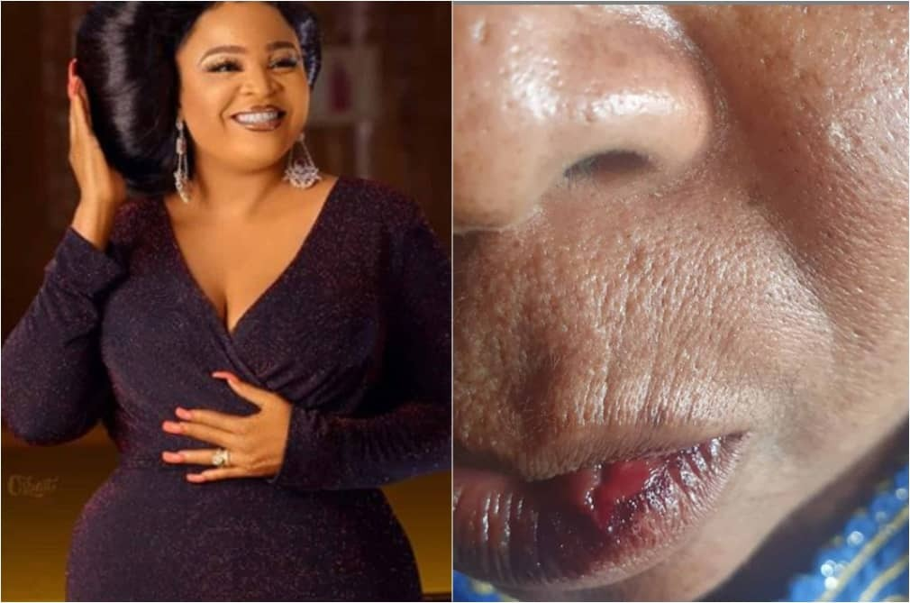 According to Bimbo Afolayan, her mother was taking her daughter to school when she was attacked with a bottle by the landlord who lives in same neighborhood with them.